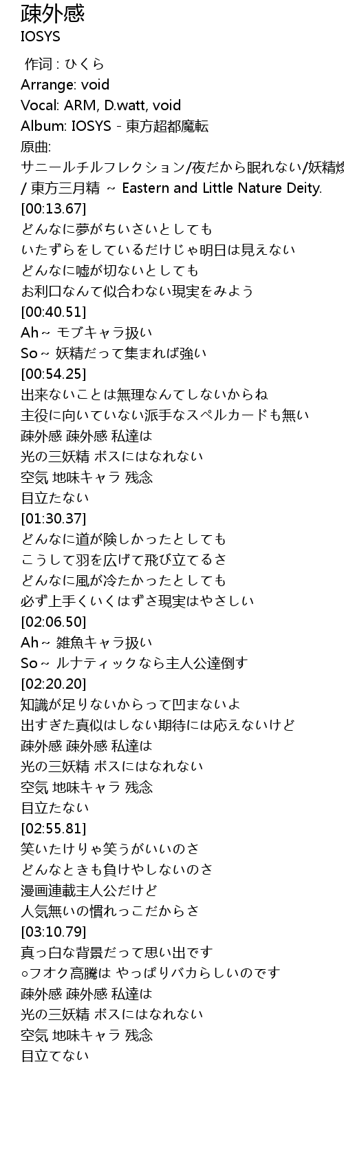 疎外感 Shu Wai Gan Lyrics Follow Lyrics